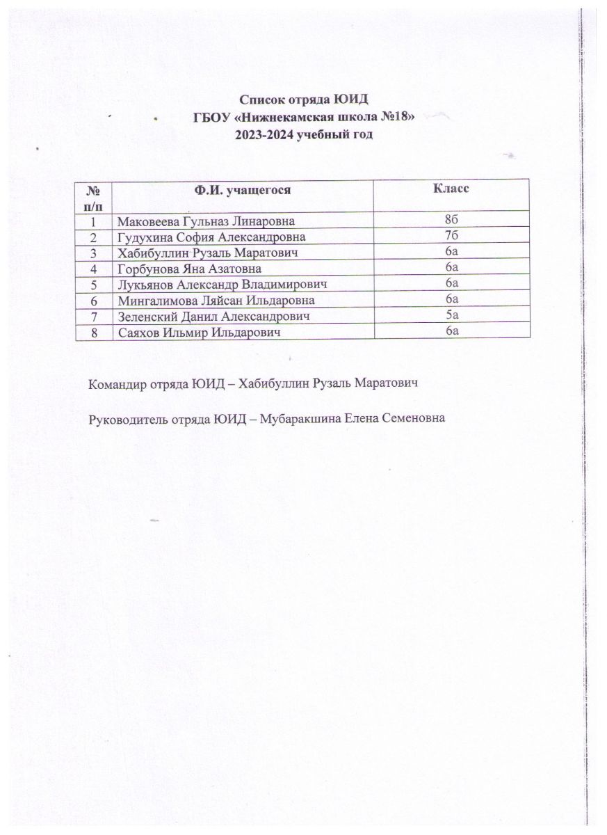 Список отряда ЮИД 2023-2024 учебный год