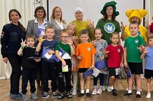 Акция "В кругу своих" - дети одетые в костюмы разных народов встали в единый, дружный круг.