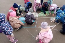 Участие в акции - создание граффити на асфальте - "Сердце России!". Это сердце символизирует единство и солидарность народа России.