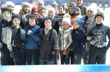 Мы, учащиеся 7 класса и наши родители, приветствуем вас с Ледового дворца. Настроение прекрасное. Значит, сегодня развлечемся на славу. Итак, время пошло. Мы перед стартом.