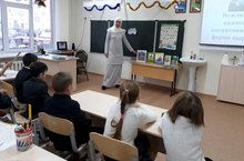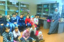 Китапханәче Нәжметдинова А.Ф. 1-4 сыйныфлар ѳчен «Игелекле бул» дигән китапханә дәресе үткәрде. Бу дәрестә балалар мультимедиа ярдәмендә табышмаклар чиштеләр, шигырьләр укыдылар. Төркемнәргә бүленеп, әдәпле сүзләр белү буенча ярыштылар. Китаплар күргәзмәсе белән таныштылар.