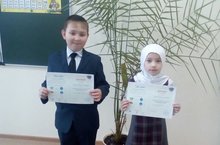 Учащиеся 3А класса СиразиеваАйсылу и Набиуллин Данил участвовали во Всероссийском конкурсе «Окружай-ка». Айсылу набрала 17 баллов из 17 возможных и получила Диплом Iстепени, Данил получил Диплом IIстепени, набрав 16 баллов. Их руководитель Мухлисова Г.Г. награждена Благодарственным письмом за отличную подготовку школьников к конкурсу по окружающему миру.