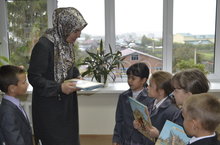 В библиотеке первоклассникам были вручены книги, подаренные президентом Республики Татарстан Р.Н.Минихановым, "Стрела наследия".