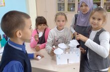 На уроке технологии учащиеся 3 класса сделали проектную работу под названием "Башня"