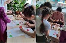 Учащиеся начальных классов попробовали новую технику печати с помощью картошек, яблок и т.д. Это быстрая техника для выполнения поздравительных открыток или рисунков.