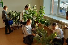 Как приятны нашим глазам цветы в рекреациях и кабинетах. Сегодня члены кружка "Юный волонтер" провели акцию "Цветы": почистили их и полили.