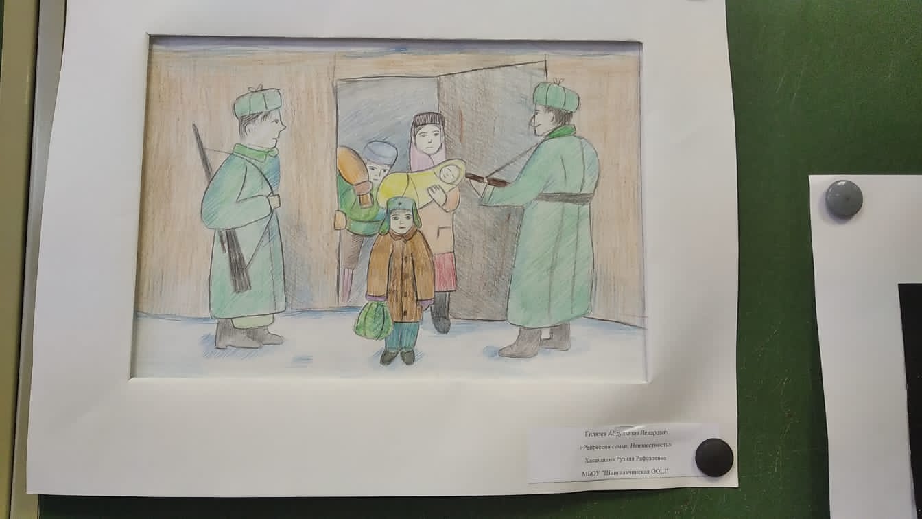 Опубликовано: 11.11.202111 ноября заместитель директора по воспитательной работе Асхадуллина Ляйсан Ринатовна посетила в школе № 12 музей истории политических репрессий, где представлена конкурсная работа нашего ученика Гилязева Абдульазиза " Репрессия семьи.Неизвестность". Руководитель- Хасаншина Рузиля Рафаэлевна.