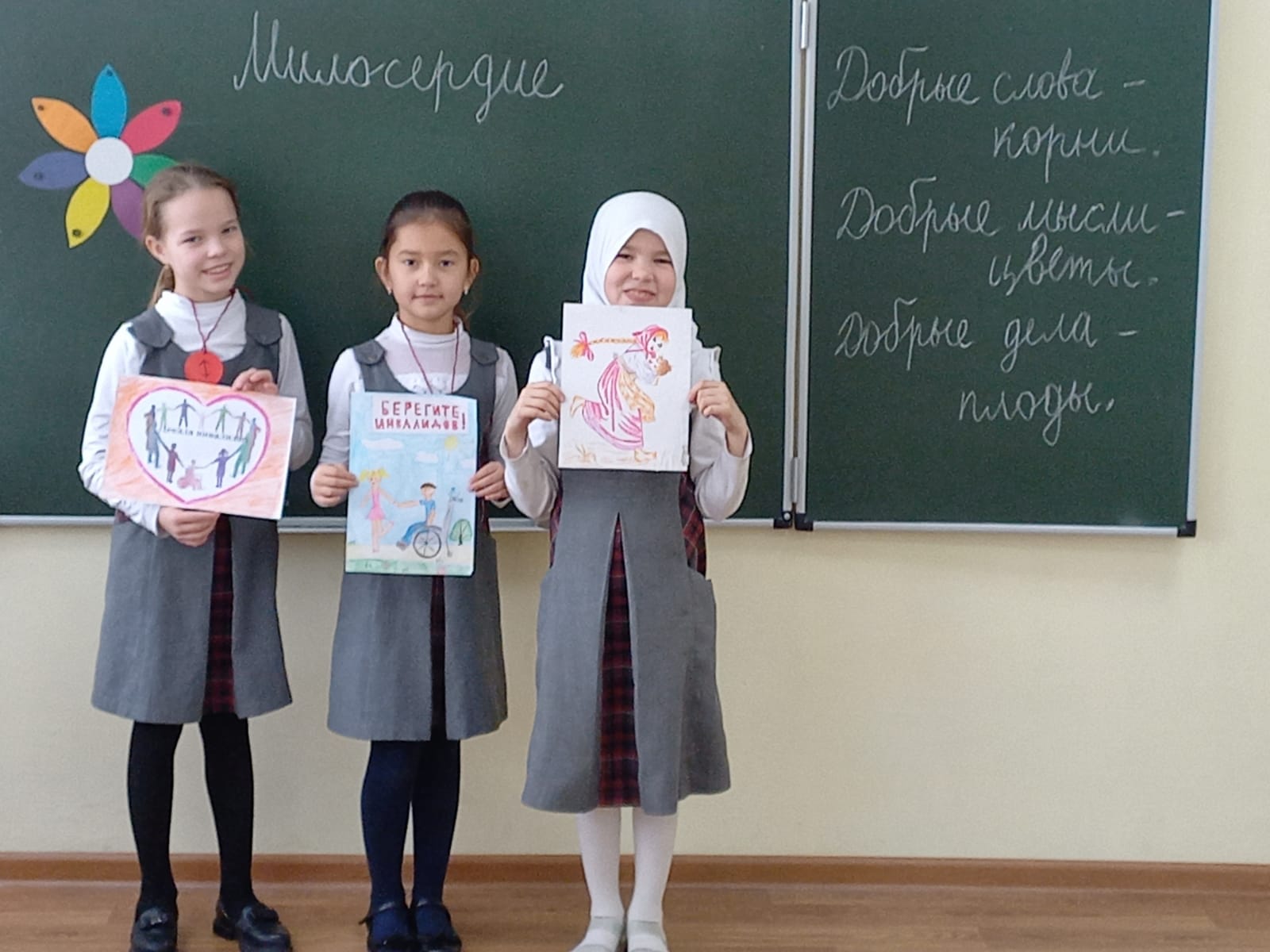 Опубликовано: 03.12.2021Сегодня во 2 и 3 классе прошел классный час на тему "Милосердие". Обучающиеся рисовали рисунки и представляли их классу.