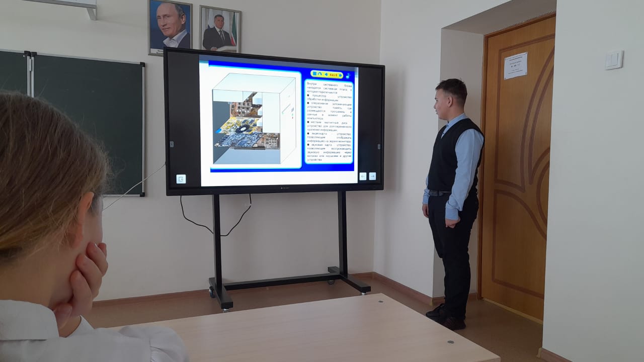Опубликовано: 18.01.2022Ученики 7 класса защищали презентацию по информатики на тему "Персональный компьютер".