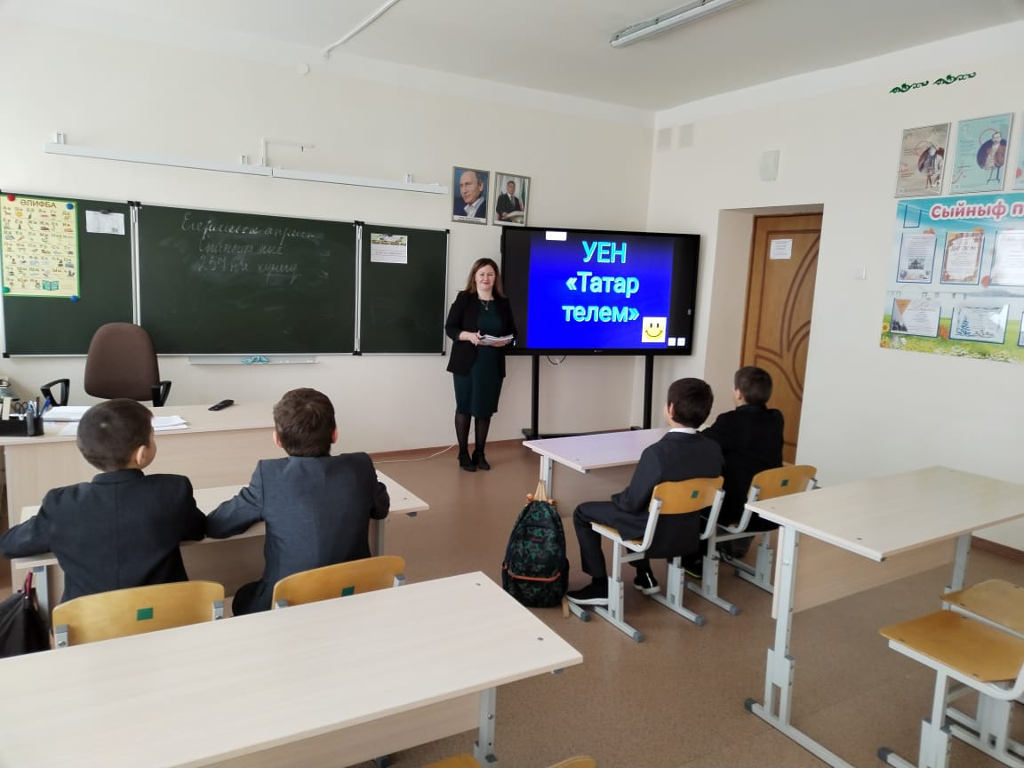 Опубликовано: 20.04.2022Буген 20-нче апрель көнне татар теле укытучысы Асхадуллина Ляйсан Ринатовна туган тел ункөнлеге кысаларында 5 нче сыйныф укучылары белән "Татар телем" исемле уен уткәрелде.