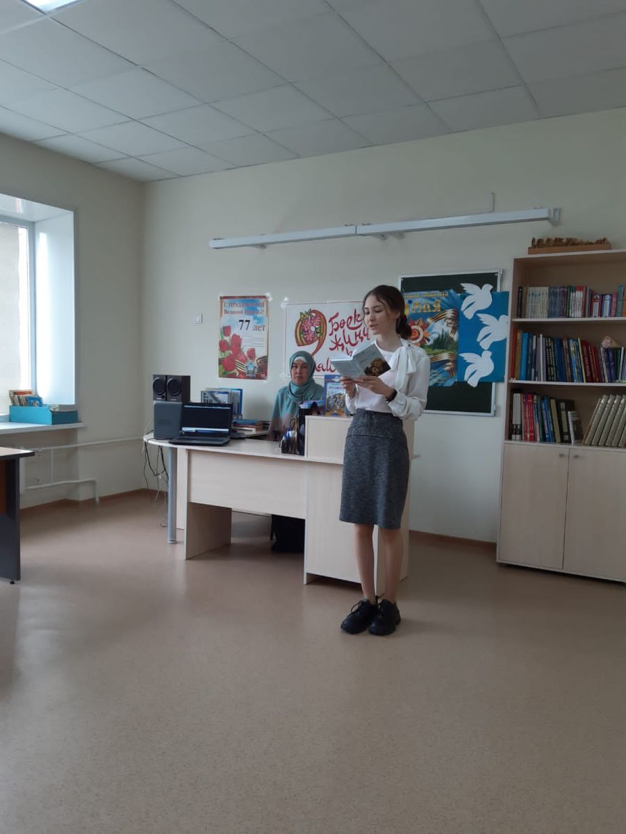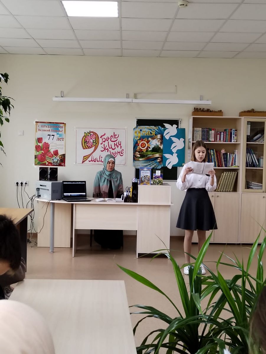Опубликовано: 05.05.2022Сегодня 5 мая в библиотеке с обучающимися 8-9 классов приняли участие в международной акции "Читаем детям о войне". Библиотекарь Назмутдинова А.Ф. расказала детям о начале ВОВ, о боях, об ужасах и испытаниях советских людей, о партизанах, об участии детей в войне. Прослушали голос Левитана о начале войны. Ученица 8 класса Валеева Аделина с чувством прочитала стих М.Исааковского "Партизанка", ученица 9 класса Бариева Лилия прочитала выразительно стих К.Симонова "Жди меня". Библиотекарь прочитала отрывок из рассказа Р.Погодина "Кони". В конце мероприятия выступила учитель русского языка и литературы Гузель Анасовна и поставила песни "Землянка" и "День Победы".