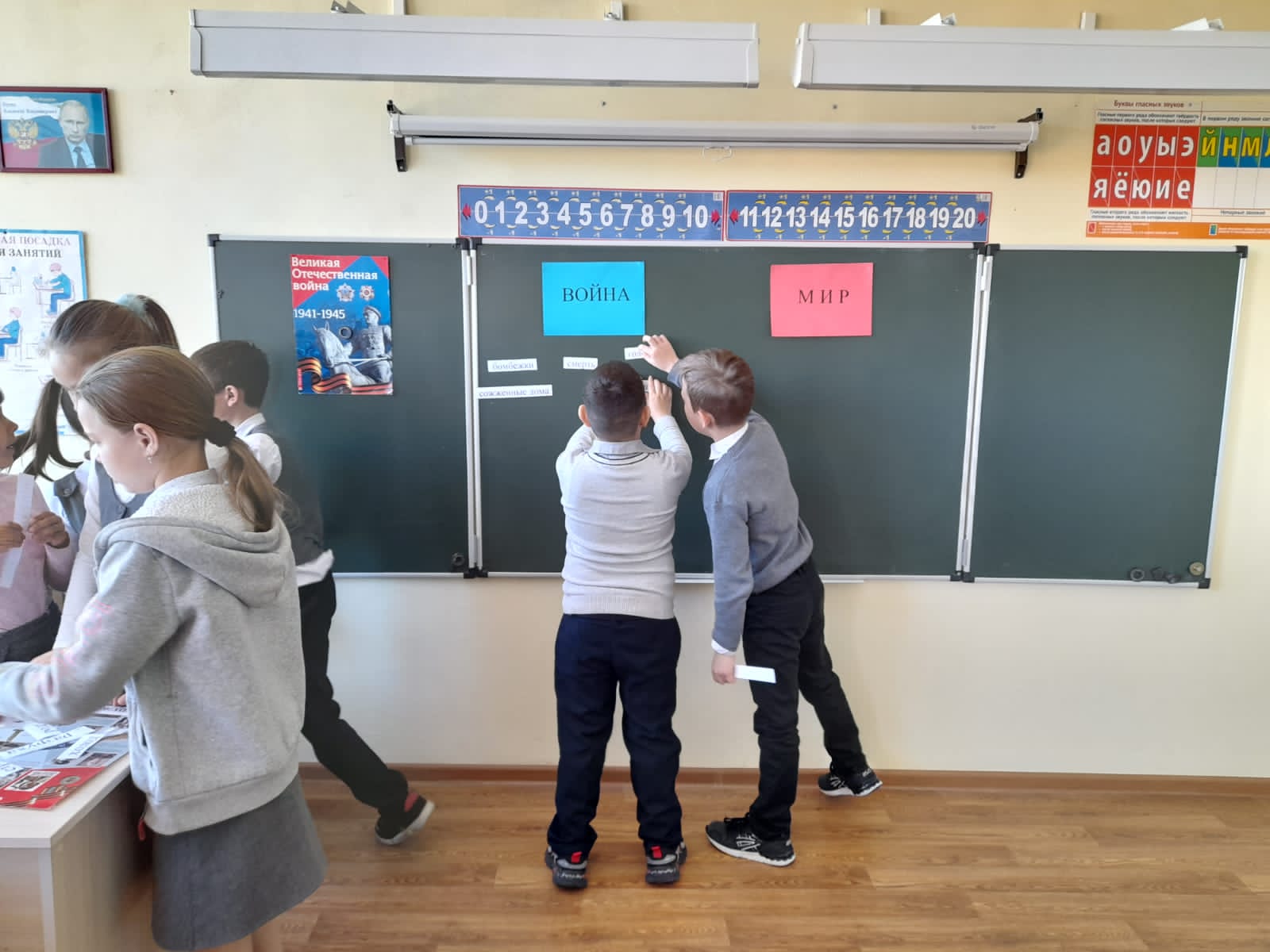 Опубликовано: 06.05.2022В 3 классе прошел классный час на тему "Война и дети", где присутствовал и 7 класс.