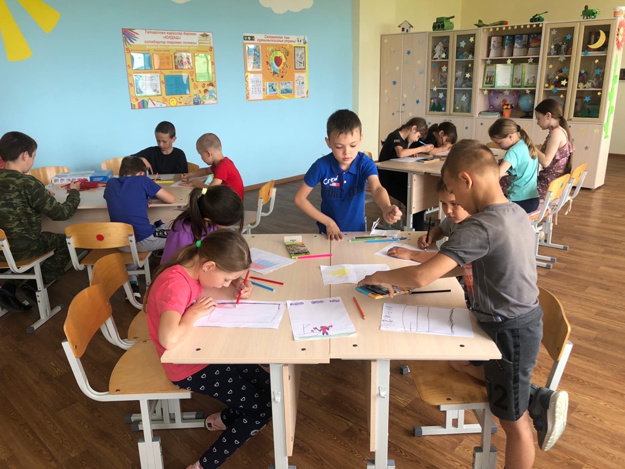 1) акция «Россия рисует», дети рисовали на асфальте флаг России;