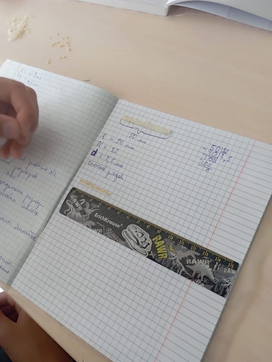 Опубликовано: 22.09.2023На уроке физики ученики 7 класса научились измерять размеры малых тел способом рядов.