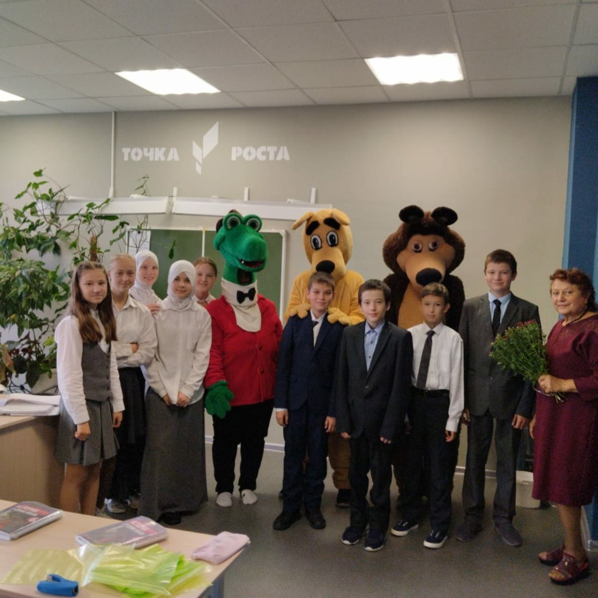 Библиотека тоже не осталась в стороне ... Крокодил Гена и его друзья Мишка и Плуто поздравляли учителей и дарили вкусняшки