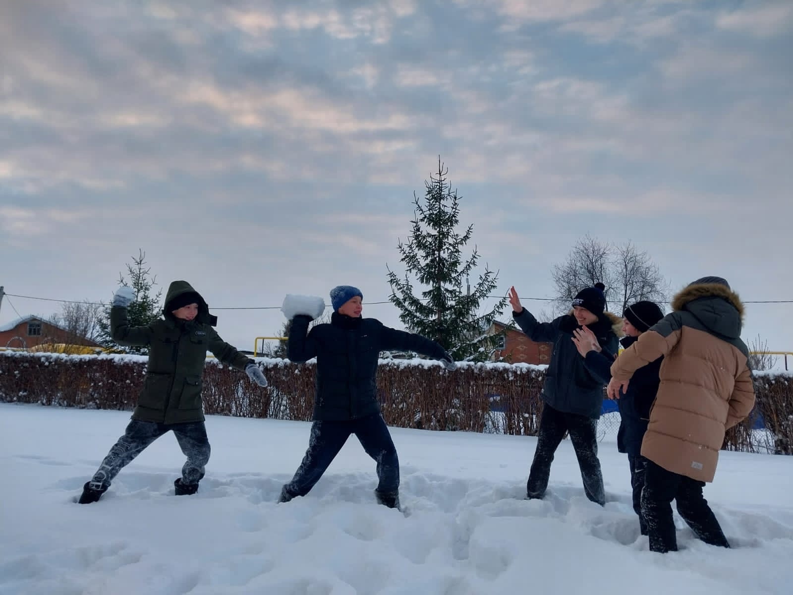Обучающиеся 7 класса проводят зимние каникулы дружно и весело. Игры на воздухе - хорошая профилактика от болезней.