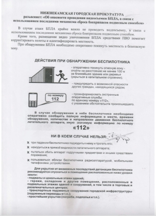 Это важно!!! Нижнекамская городская прокуратура разъясняет: "Об опасности проведения видеосъемки БПЛА, в связи с использованием последними механизма сброса боеприпасов подвесным способом"