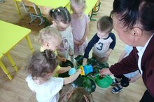 Бүген балалар белән ничек бүлмә гөлләрен тәрбияләргә, кайчан, күпме су сибәргә икәнен сөйләштек. Балалар бик теләп бүлмә гөлләренә су сиптеләр.