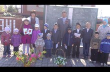 Ташлык балалар бакчасы һәм башлангыч мәктәбе балалары Һәйкәл янында