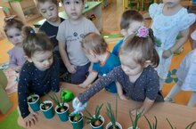 Без кечкенәләр төркемендә үсемлек үсешен күзәтү буенча тәҗрибәләр үткәрүне балалар кызыксындырырлык итеп оештырырга тырыштык. Бу эшне балалар зур кызыксыну белән бик теләп башкардылар. Һәр бала үзе утырткан үсемлекнең үсешен даими күзәтеп, үзгәрешләргә нәтиҗә ясап барды, бу билгеле балаларда шатлык хисе уята. Бу проектыбызны 19 мартта башлаган идек. Бүген проектыбызны тәмамлап, суган белән йомырка пирожкие пешердек. Пирожкилар белән барысында сыйладык.
