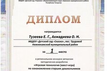 Воспитатели Ахмадиева Оксана Николаевна и Тузеева Елена Геннадьевна приняли участие в региональном конкурсе авторских методических разработок.