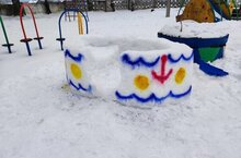 Выпал мокрый снег, дети вместе со взрослыми с большим удовольствием лепят снежные фигуры.