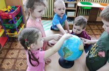 Рассмотрели глобус, определили где на нём изображены леса. Поговорили о том какие деревья бывают, какую пользу приносят нашей Земле и человеку. Поиграли в игру " Что лишнее", "Раз, два, три к берёзе (дубу,липе) беги". -