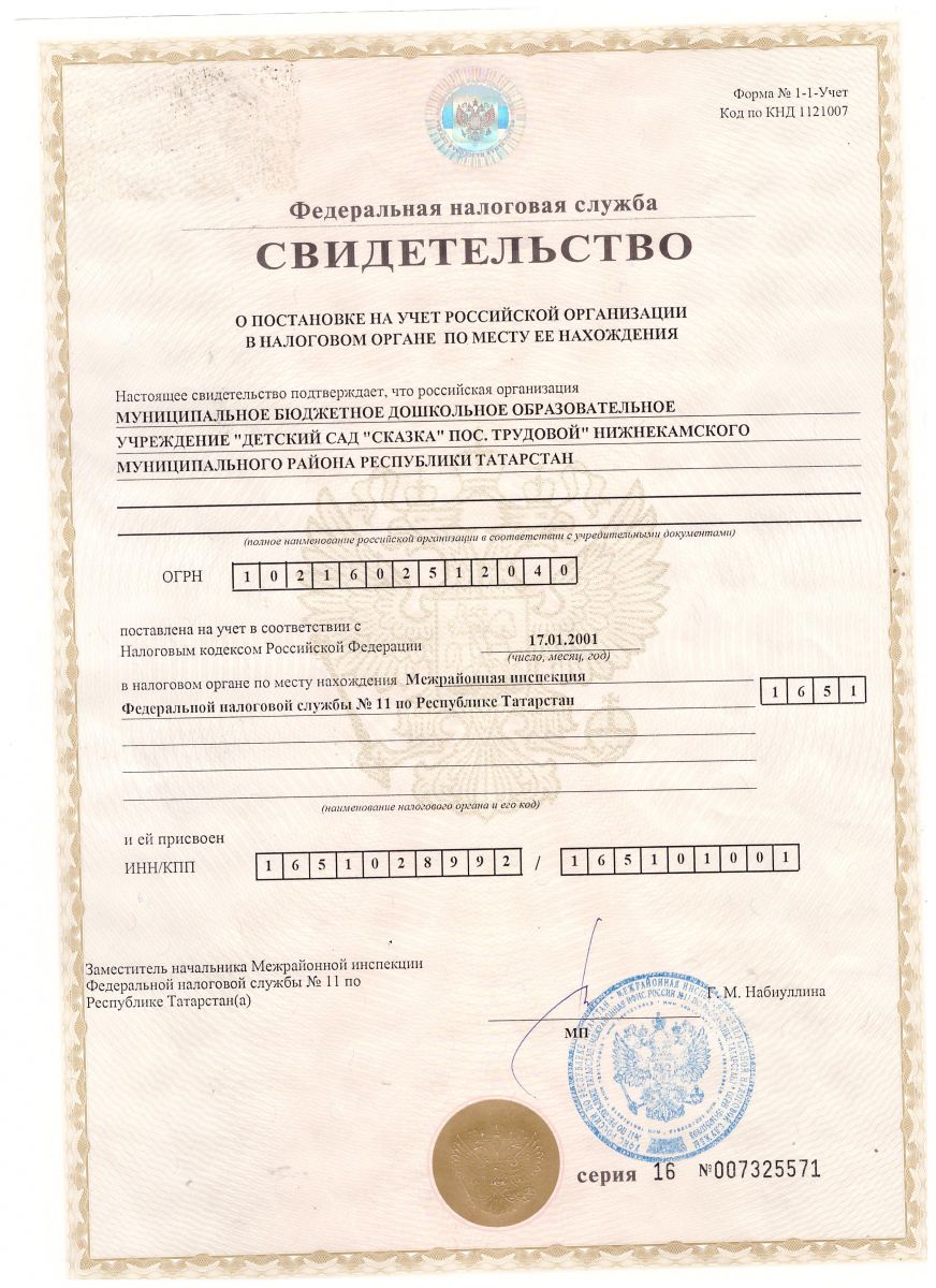 Короткое название: МБДОУ "Детский сад "Сказка" пос. Трудовой" НМР РТ