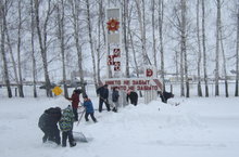 Члены ДОО «Единство» круглый год участвуют в акции «Территория неприкосновенности», весной вокруг памятника сажают цветы, летом и зимой ухаживают. Особенно зимой.