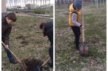 Технический персонал проводили уборку школьной территории, побелили деревья и бордюры вдоль дорожек