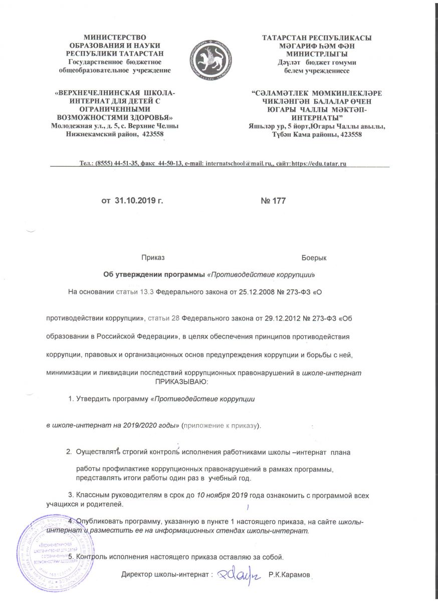 Приказ "Об утверждении программы "Противодействие коррупции"