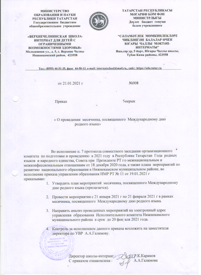 Приказ о проведении месячника, посвященного Международному дню родного языка