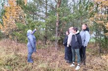 Ученики собрались, чтобы исследовать окружающую природу и узнать больше о лесной экосистеме.