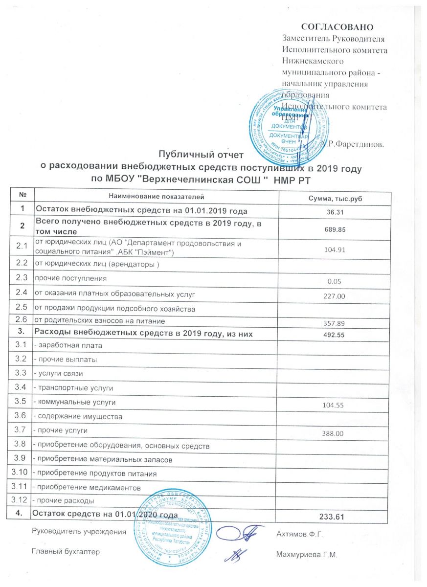 Публичный отчет о расходовании внебюджетных средств поступивших в 2019 году