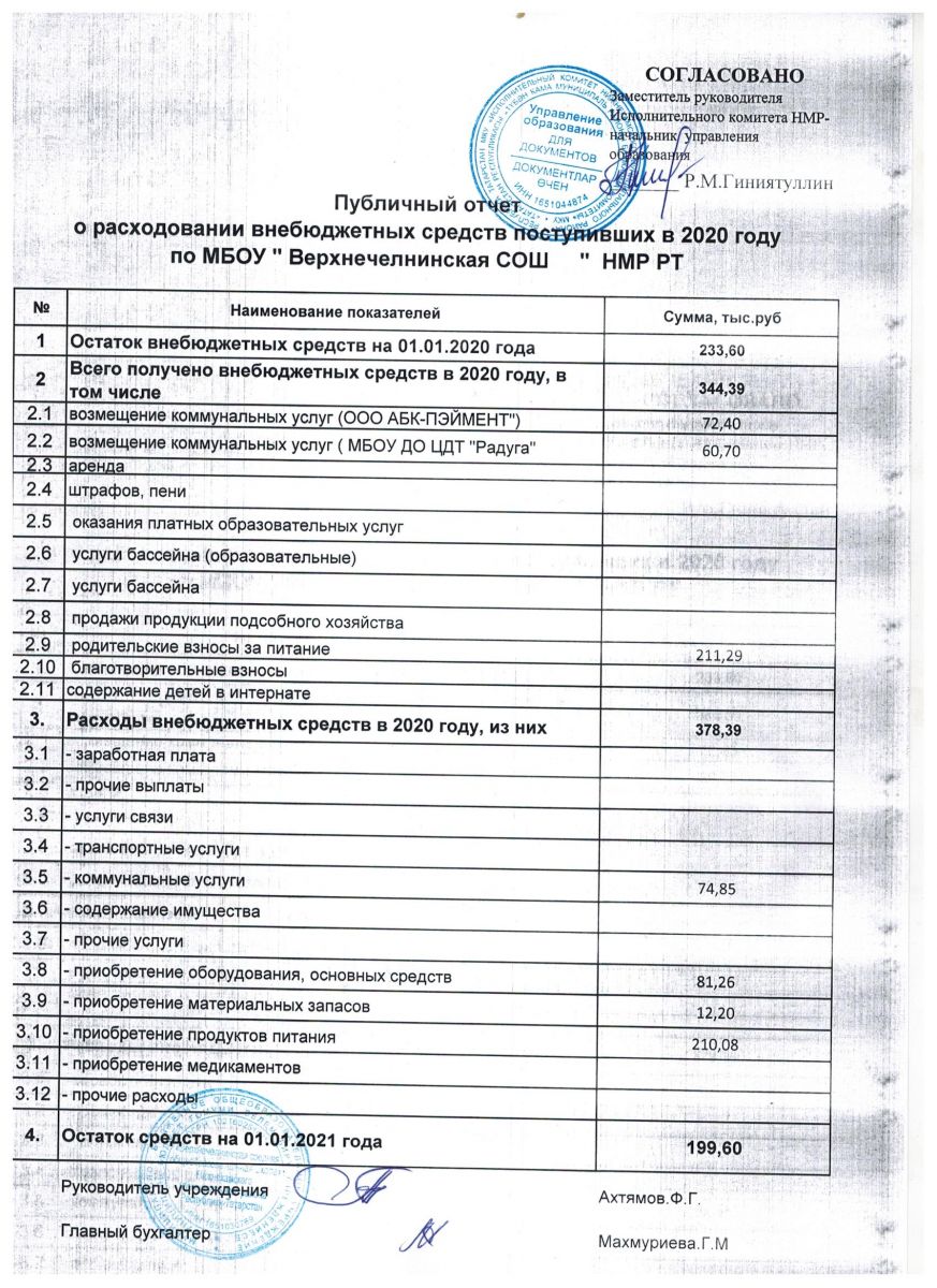 Публичный отчет о расходовании внебюджетных средств поступивших в 2020 году