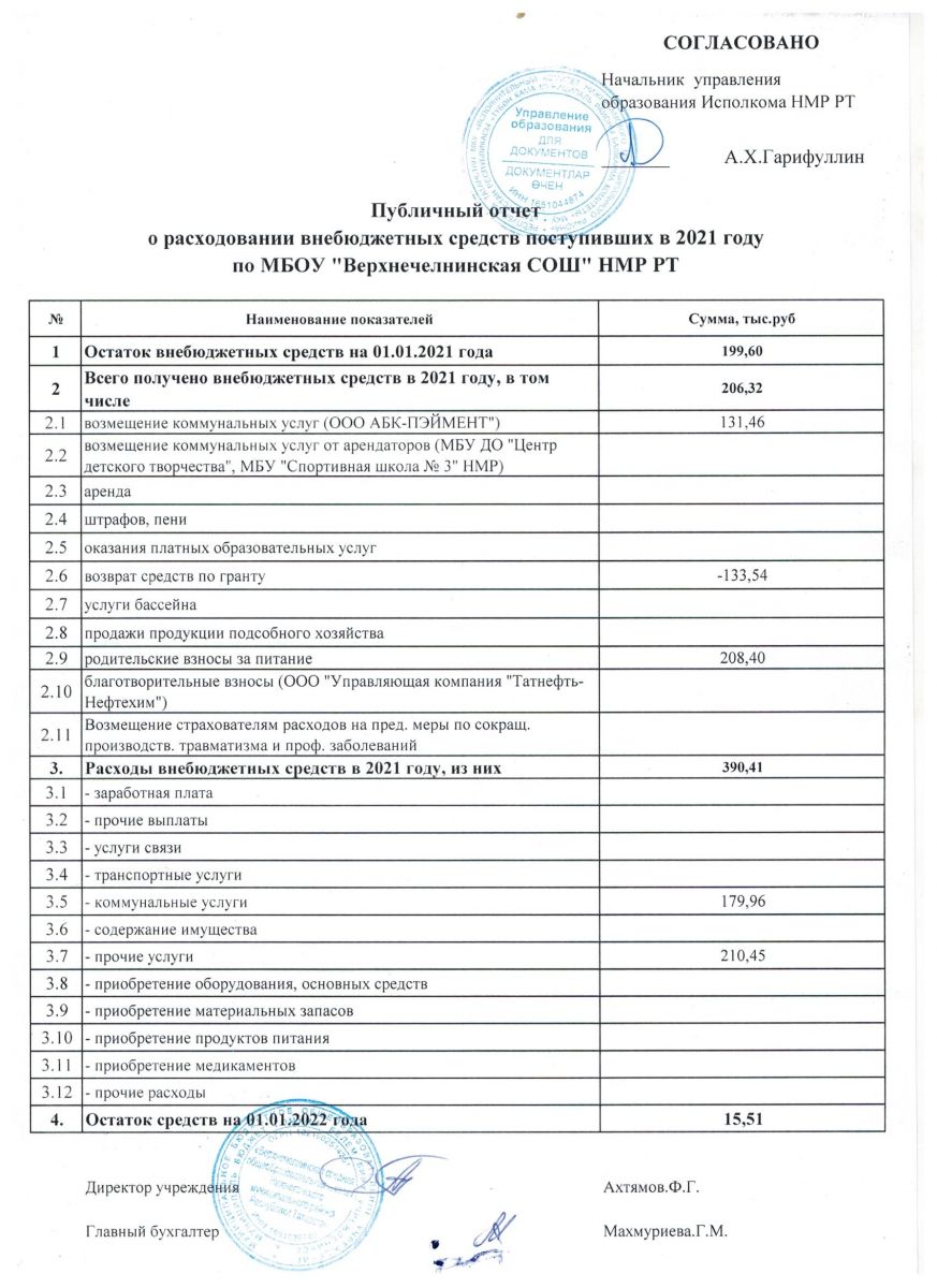 Публичный отчет о расходовании внебюджетных средств поступивших в 2021 году