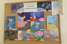Ко Дню космонавтики в школе оформлена выставка рисунков учащихся «Новости из невесомости».