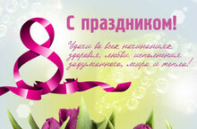 Коллектив педагогов, сотрудников и учеников поздравляет мам, бабушек, сестер с Международным женским днем! Пусть всегда в душе расцветает Весна! Пусть хлопоты будут приятными! Здоровья и доброты! Мира и благополучия!