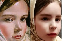 Картина"Портрет девочки в Павлопосадском платке" Неизвестный художник, 19 век.