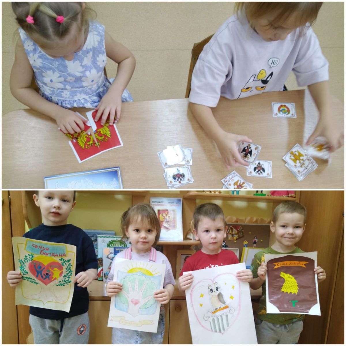 30 ноября 2023 г. отмечается 30 лет со дня утверждения Герба Российской Федерации. Ребята на занятии познакомились с гербом Российской Федерации, закрепили знания о символе России - гербе в игре "Найди пару" и складывая разрезные картинки. Были созданы гербы семей, о которых ребята рассказали в детском саду.