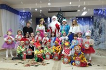 Ребята веселились с Дедом Морозом и Снегурочкой, с увлечением рассказывали стихи о зиме, вместе со сказочными героями пели, танцевали, участвовали в весёлых играх и хороводах. Все получили новогодние подарки и чудесное праздничное настроение! -