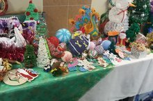 Сегодня в нашем детском саду организована выставка ёлочных игрушек, сделанных родителями и детьми, приуроченная к конкурсу "Новогоднее чудо". лучшая игрушка будет участвовать в районном конкурсе.