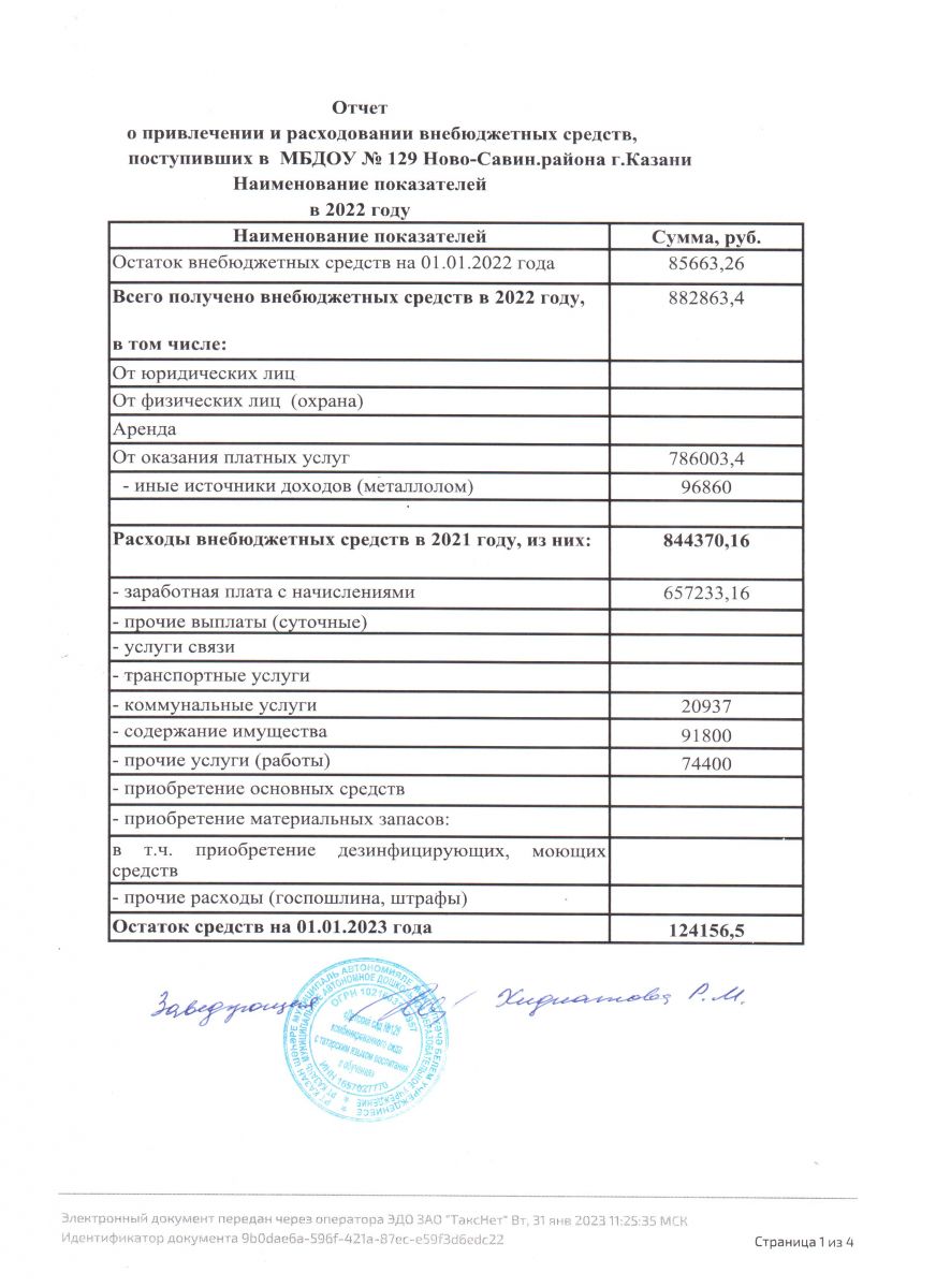 Отчет о привлечении и расходовании внебюджетных средств в 2022 году
