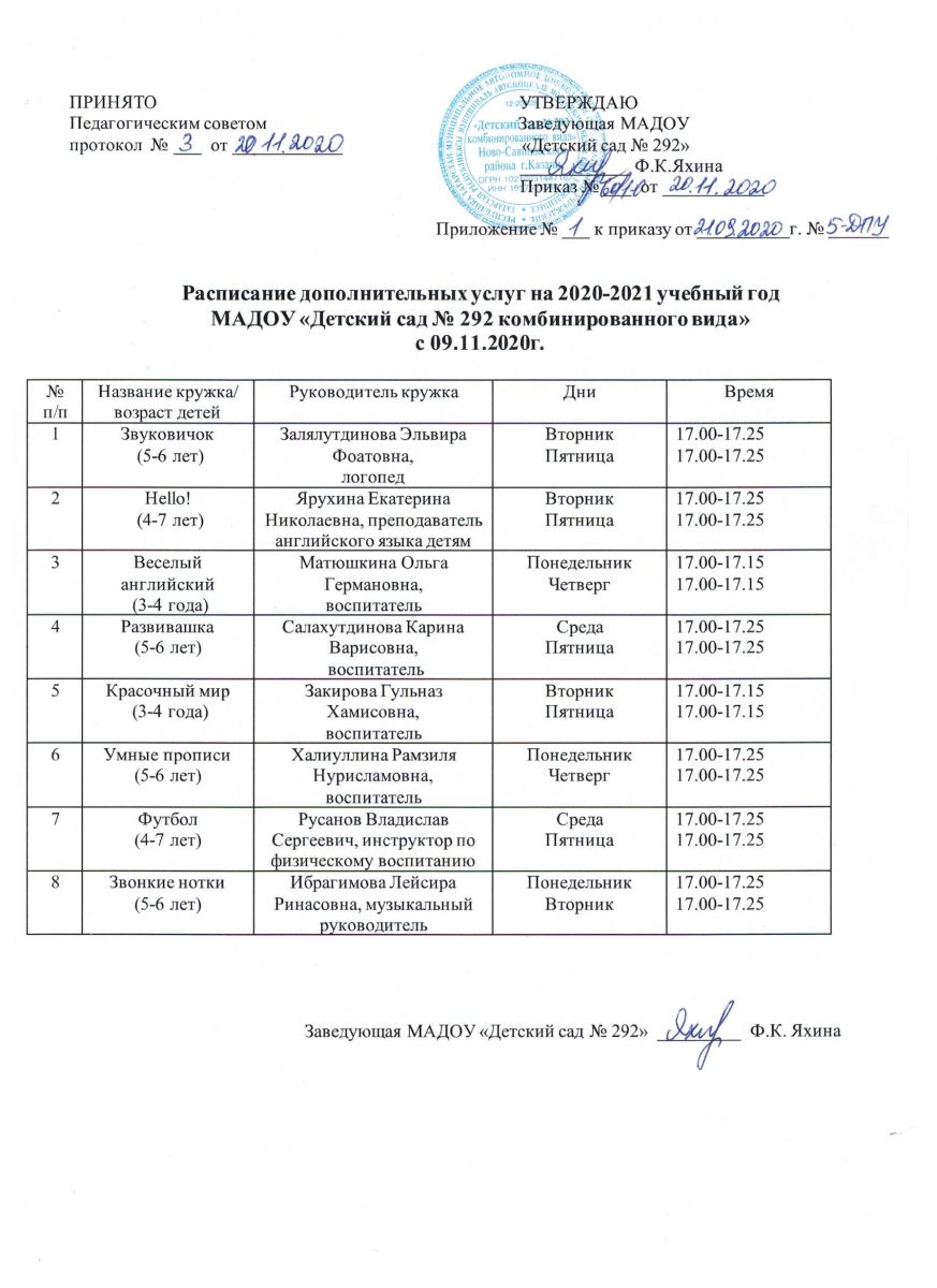 Расписание дополнительных услуг