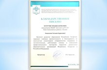 Институт развития образования Республики Татарстан выражает глубокую признательность и благодарность за плодотворное сотрудничество, активную и эффективную работу по реализации инновационных проектов в области дошкольного образования. Благодарственным письмом наградили: заведующую Петручик Татьяну Борисовну; старших воспитателей Чугунову Людмилу Владимировну и Солопий Анну Владимировну.