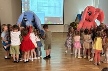Сегодня в рамках проекта "Обнимама идет в гости" к нам в детский сад пришли представители Зеленодольского молочноперерабатывающего комбината. Они провели праздник при участии маскотов в виде ростовых кукол слона Обнимамы и Обнимашки и подарили детям фирменные подарки - фотомагниты с фотографиями детей в фирменной рамке бренда Обнимама.
