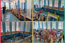 Увлекательные занятия в бассейне для старших и подготовительных групп приготовил наш физинструктор, Александр Юрьевич.