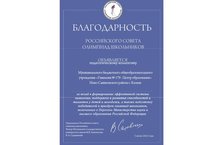 Благодарность объявляется педагогическому коллективу гимназии за вклад в формирование эффективной системы выявления, поддержки и развития способностей и талантов у детей и молодежи, подготовку победителей и призеров олимпиад школьников, включенных в Перечень Министерства науки и высшего образования РФ.