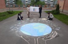 Создали с 7ит классом рисунок мелом на асфальте, площадью 3х3 метра. Организовали и провели конкурс рисунков по четырём темам: