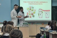 Новая серия профилактических мероприятий от волонтеров- медиков для обучающихся гимназии. 11 ноября волонтеры пришли во 2б класс, рассказали о строении и правильной гигиене зубок
